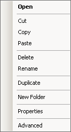 New Folder | Creates a new folder in the same folder as the selected item. |